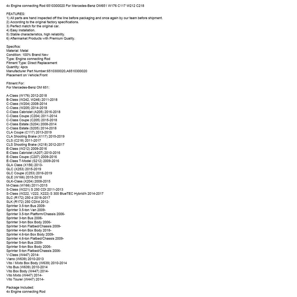 4x Motor drijfstang 6510300020 voor Mercedes-Benz OM651 W176 C117 W212 C218
