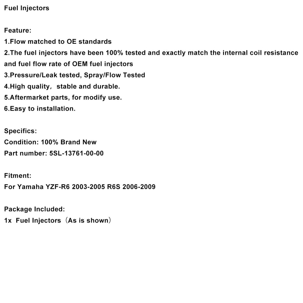 Brandstofinjectoren compatibel met Yamaha YZF-R6 2003-2005 en R6S 2006-2009