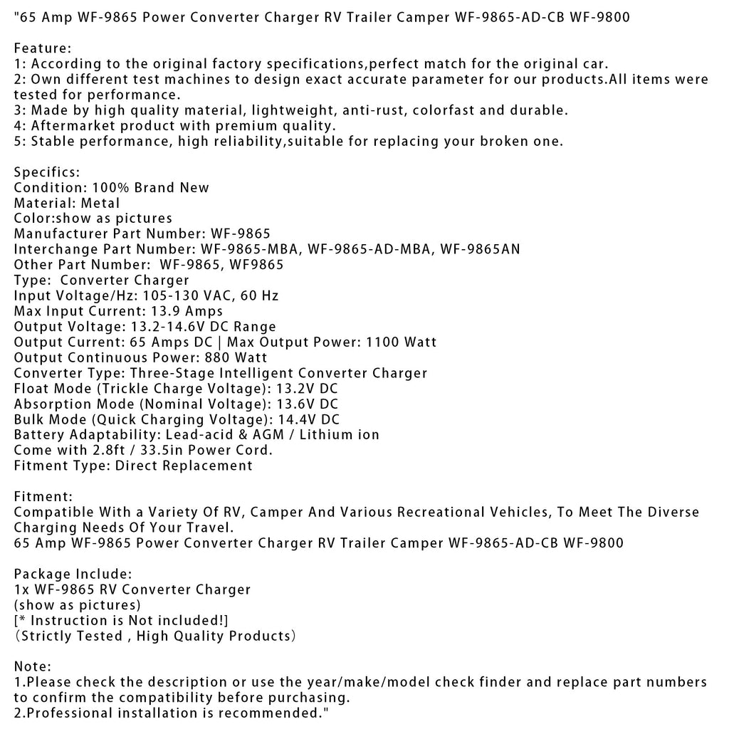 65A Omvormer WF-9865, lader voor camper, caravan, aanhanger, WF-9865-AD-CB WF-9800