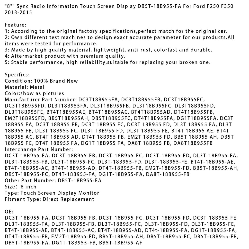 Synchroniseer radio-informatie touchscreen 8""DB5T-18B955-FA Compatibel met Ford F250 F350 2013-2015"