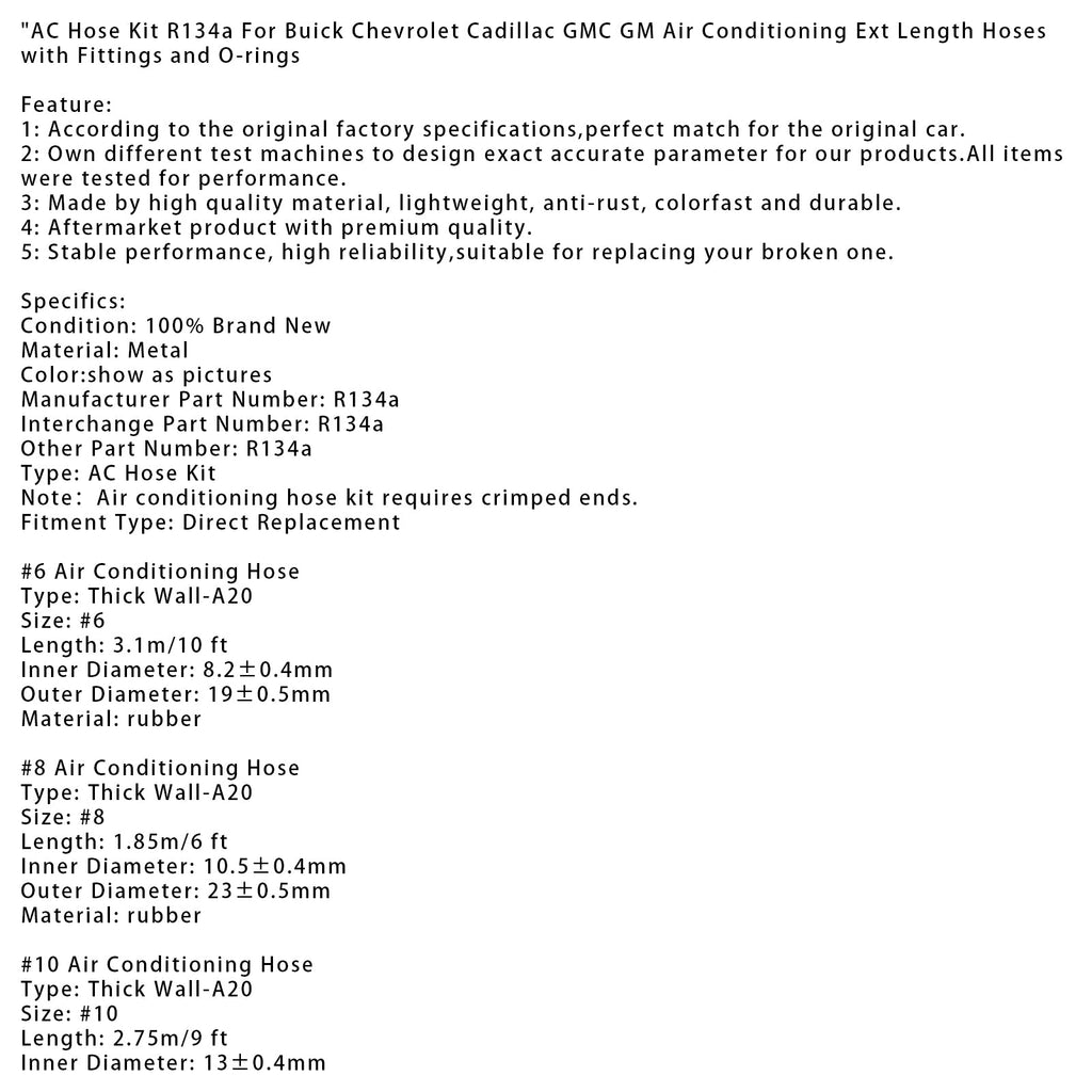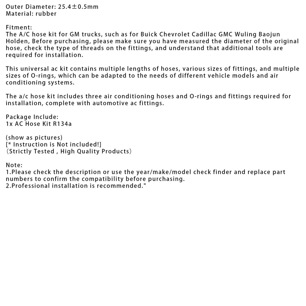 Airconditioningslangenset voor GM-trucks, zoals Buick, Chevrolet, Cadillac, GMC, Wuling, Baojun en Holden. Controleer vóór aankoop de diameter van uw originele slang, het type schroefdraad van de koppelingen en houd er rekening mee dat er extra gereedschap nodig is voor de installatie.