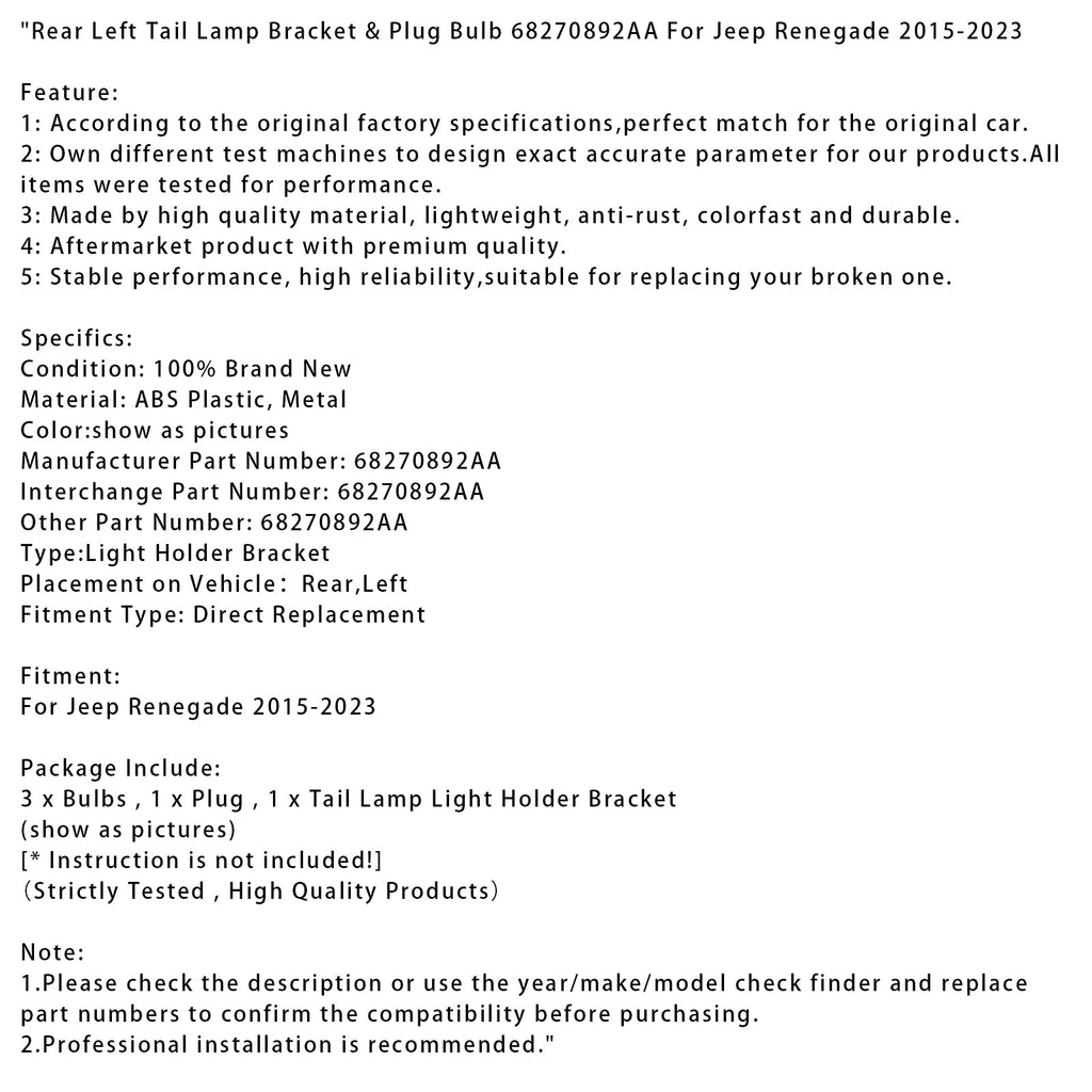Linkerachterlichtbeugel en fitting 68270892AA voor Jeep Renegade 2015-2023