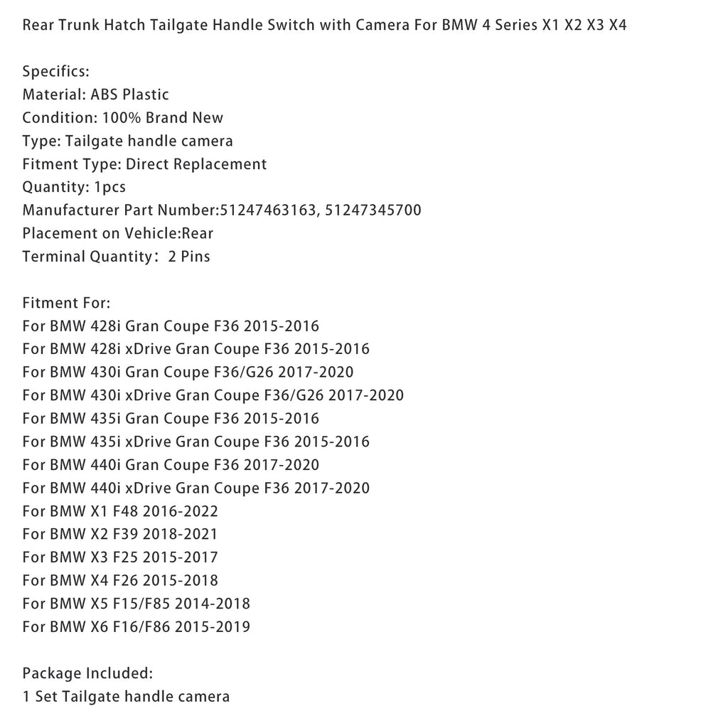Achterklephandgreep met camera voor BMW 4 Serie X1 X2 X3 X4