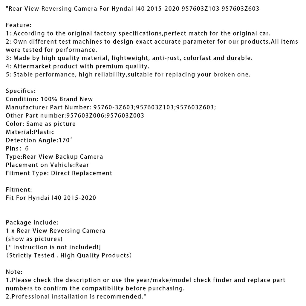 Achteruitrijcamera voor Hyundai I40 2015-2020 957603Z103 957603Z603