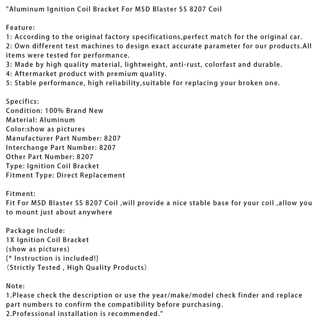 1. Controleer de beschrijving of gebruik de jaar-/merk-/modelcontrolemotor en vervang onderdeelnummers om de compatibiliteit te bevestigen voordat u tot aankoop overgaat.