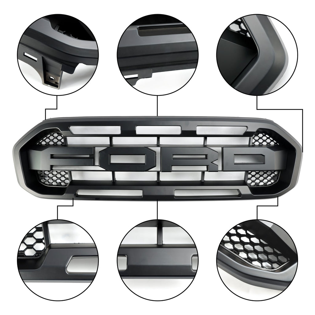Zwarte Raptor-stijl voorbumpergrille voor Ford Ranger 2019-2023