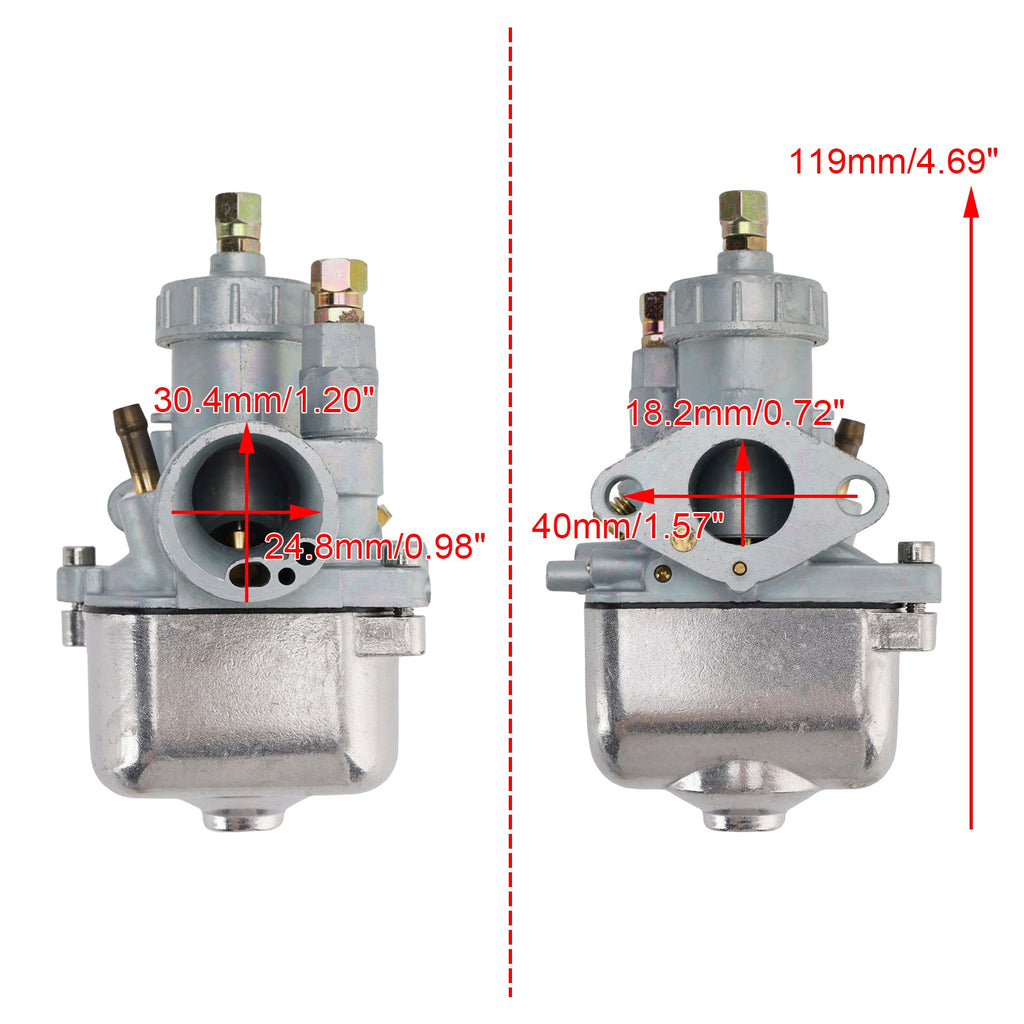 Verkrijgbaar in 16 mm, 19 mm en 21 mm carburateurs voor motorfietsen met verschillende motorinhoud. Controleer voor aankoop of het kaliber geschikt is.