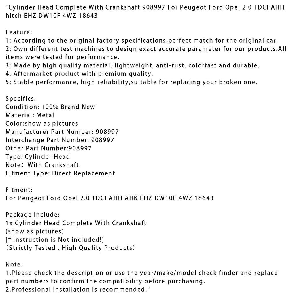Complete cilinderkop met krukas 908997 voor Peugeot Ford Opel 2.0 TDCI AHH koppeling EHZ DW10F 4WZ 18643