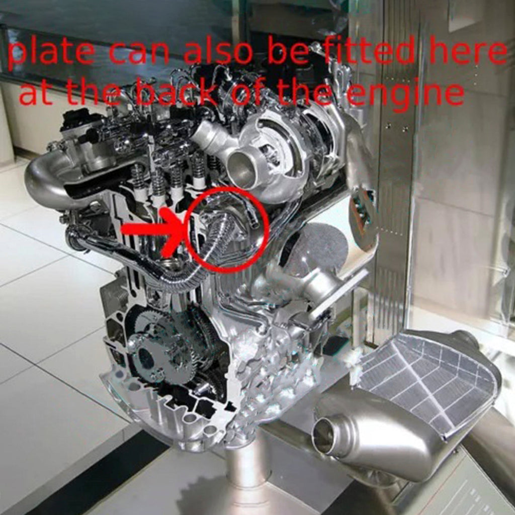 Met deze plaat gaat het motormanagementlampje branden, maar de plaat gaat niet in de noodloop. (Een gat in de plaat zou nog steeds het EML-lampje inschakelen, dus dat is nutteloos.) De plaat is voorzien van een sleuf voor eenvoudige installatie.