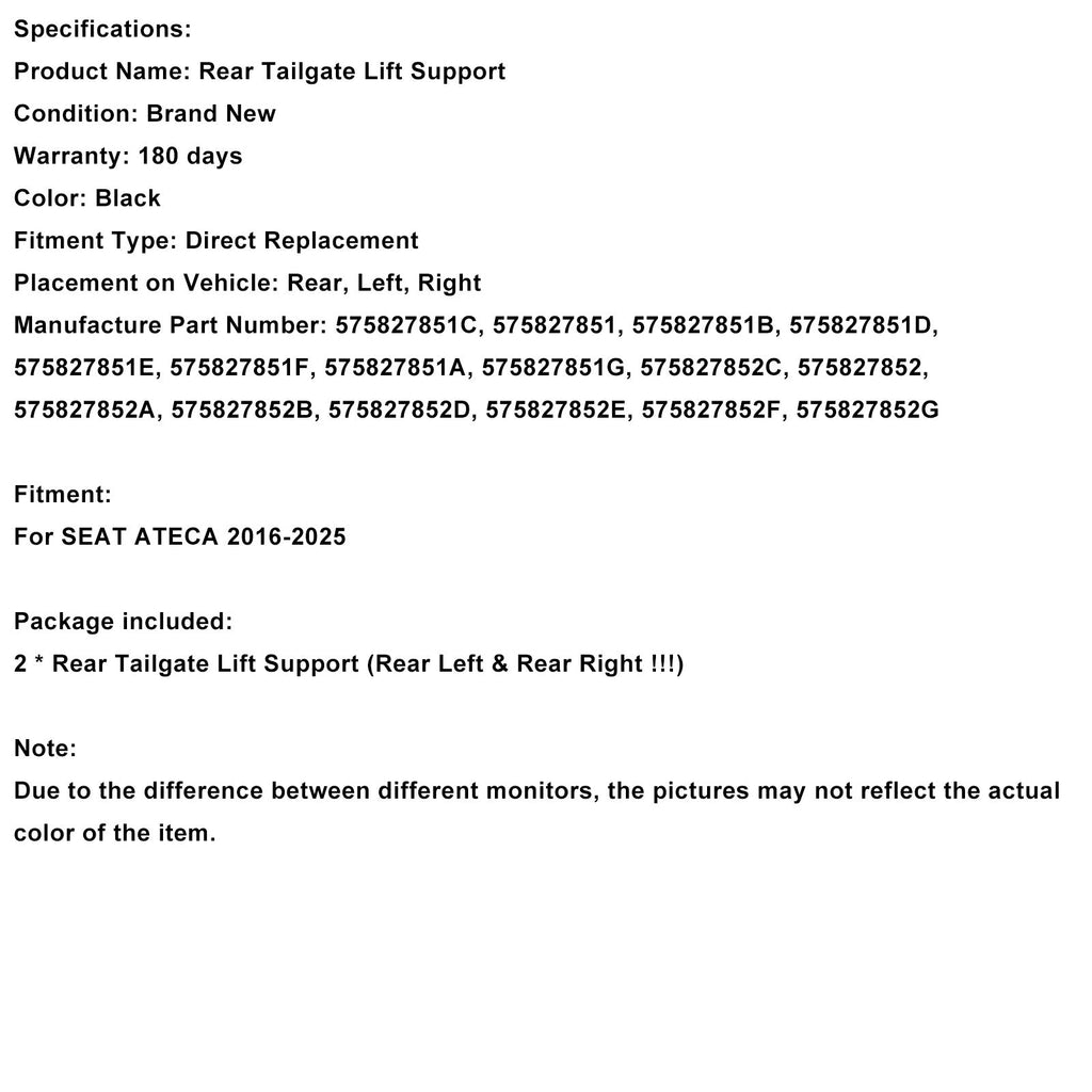 Elektrische achterklepveren 575827852D compatibel met Seat Ateca 2016-2025 575827851D
