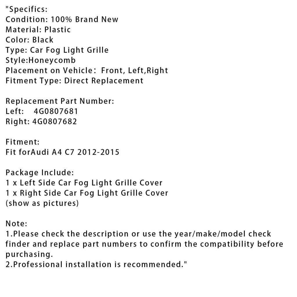 Zwarte voorbumper met honingraat mistlamprooster voor Audi A4 C7 2012-2015