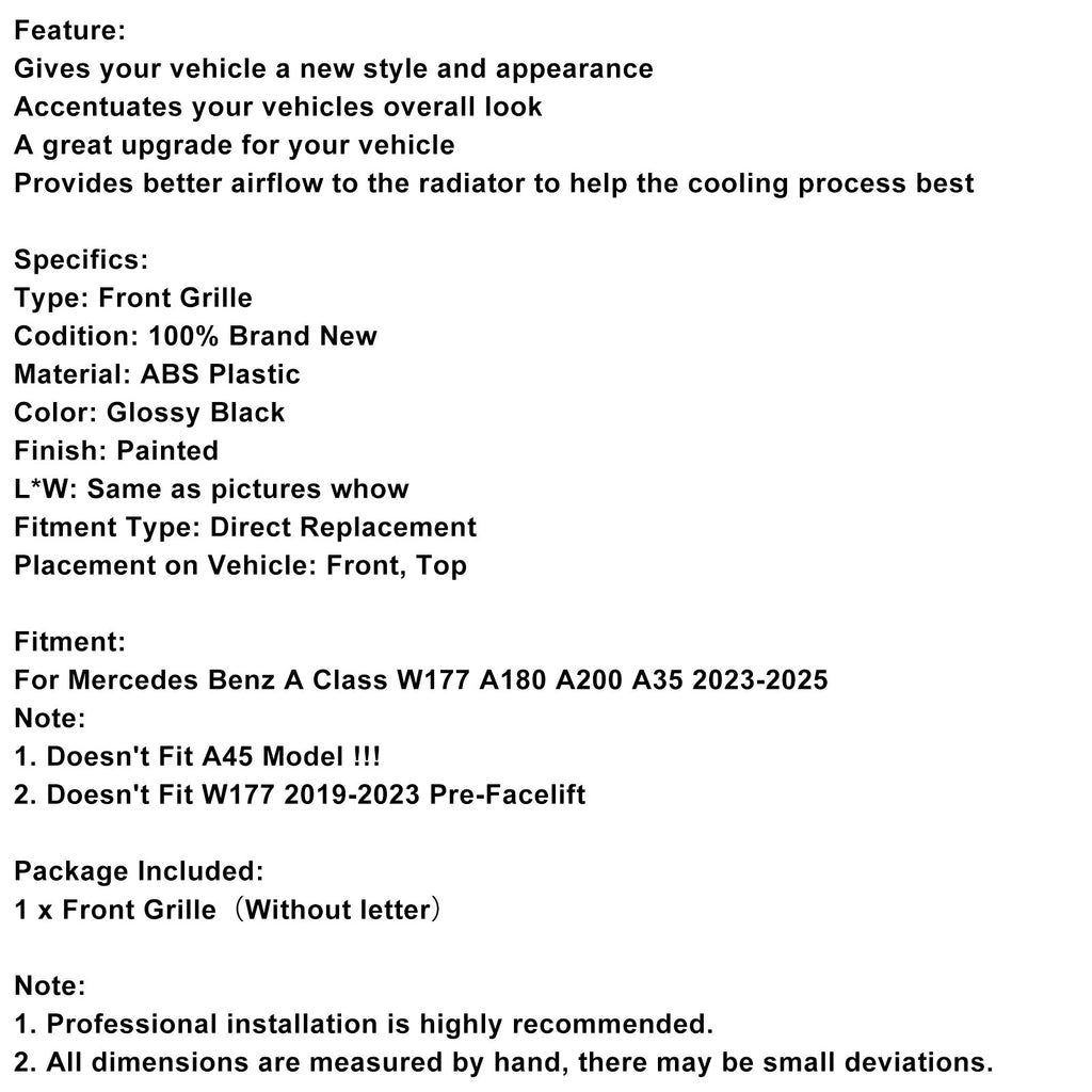 Glanzend zwarte frontgrille voor Mercedes A-Klasse W177 A35 A180 2023-2025