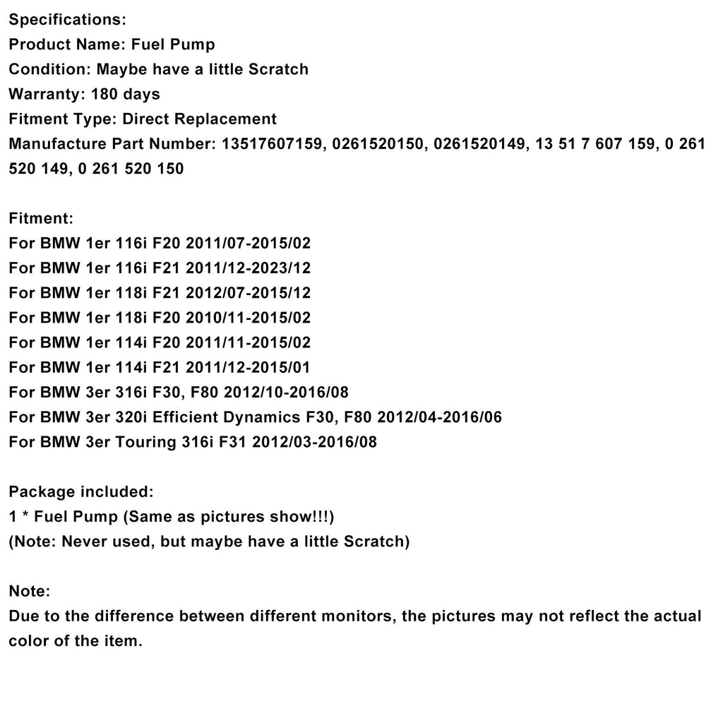 Hogedruk brandstofpomp 13517607159 compatibel met BMW N13B16A 118i 114i 316i 320i 316i