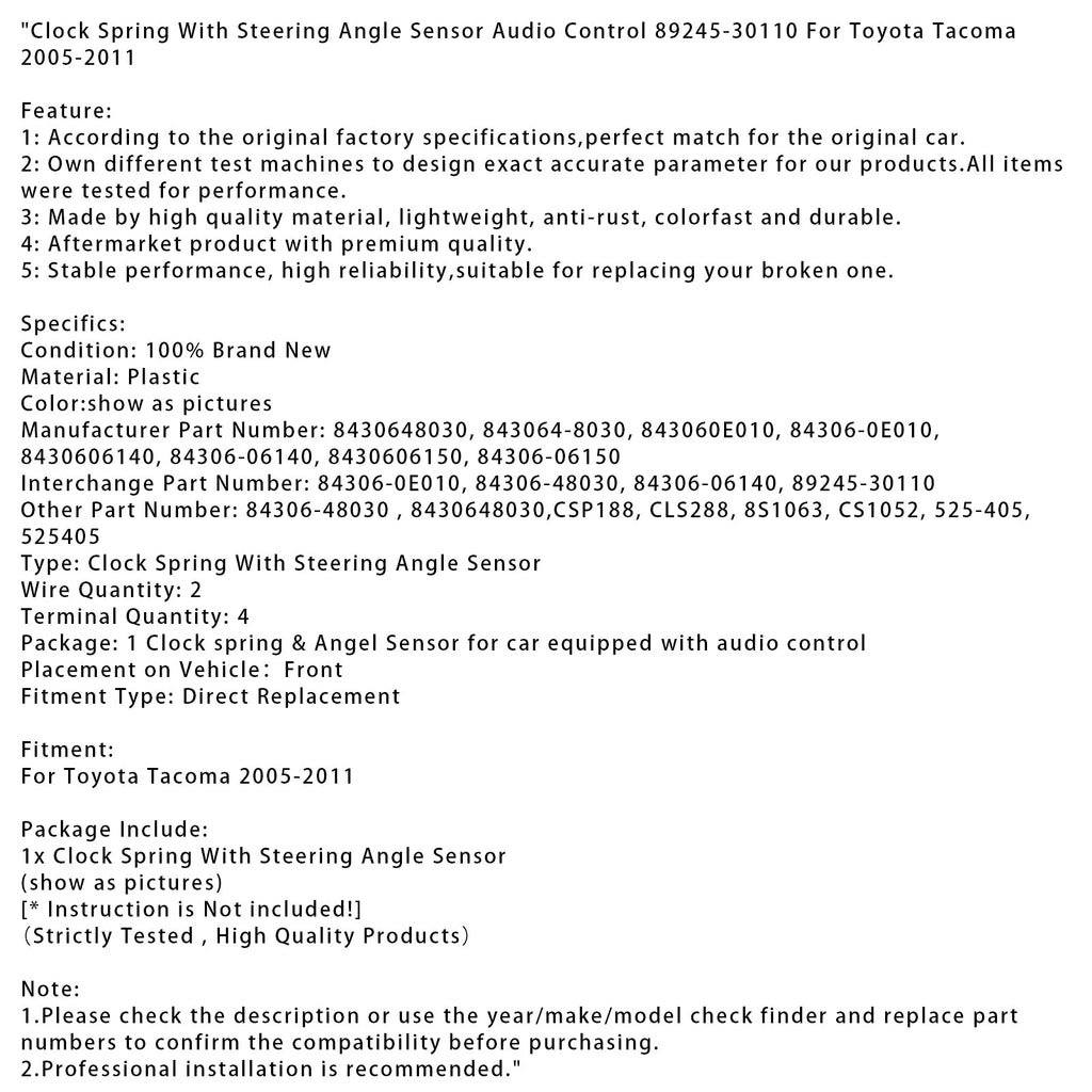 Terugslagveer met stuurhoeksensor en audiobediening 89245-30110, compatibel met Toyota Tacoma 2005-2011