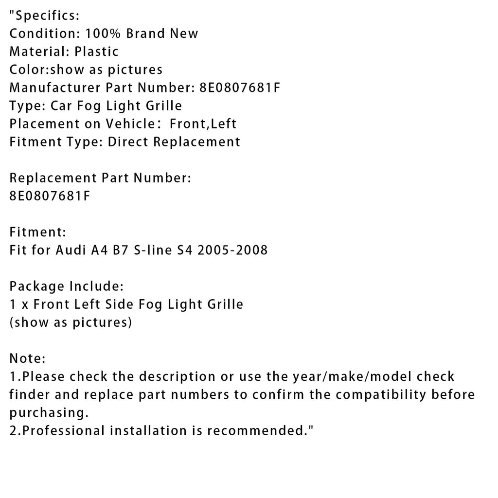 Linker voorbumperrooster en mistlamp voor Audi A4 B7 S-Line S4 2005-2008