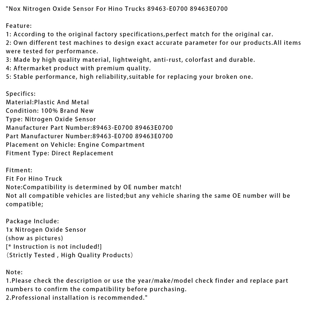 NOx stikstofoxidesensor compatibel met Hino vrachtwagens 89463-E0700 89463E0700