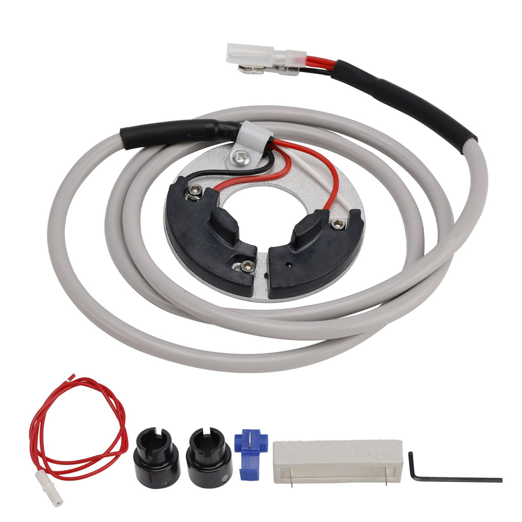 Deze bevindt zich achter het ontstekingsdeksel en maakt gebruik van een magnetische rotor met de originele vonkvervroeging, zodat de fabrieksvervroegingscurve behouden blijft.