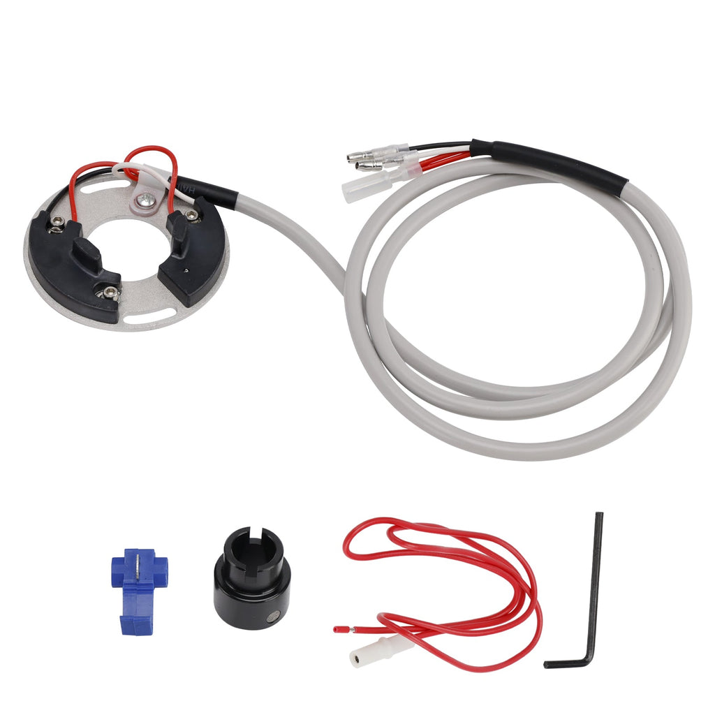Deze bevindt zich achter het ontstekingsdeksel en maakt gebruik van een magnetische rotor met de originele vonkvervroeging, zodat de fabrieksvervroegingscurve behouden blijft.