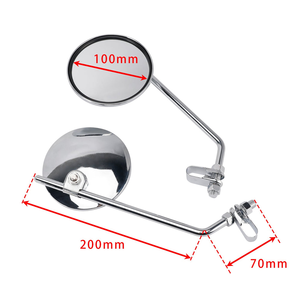 Universele klassieke chromen klemspiegels voor cafe racer- en chopper-motorfietsen.