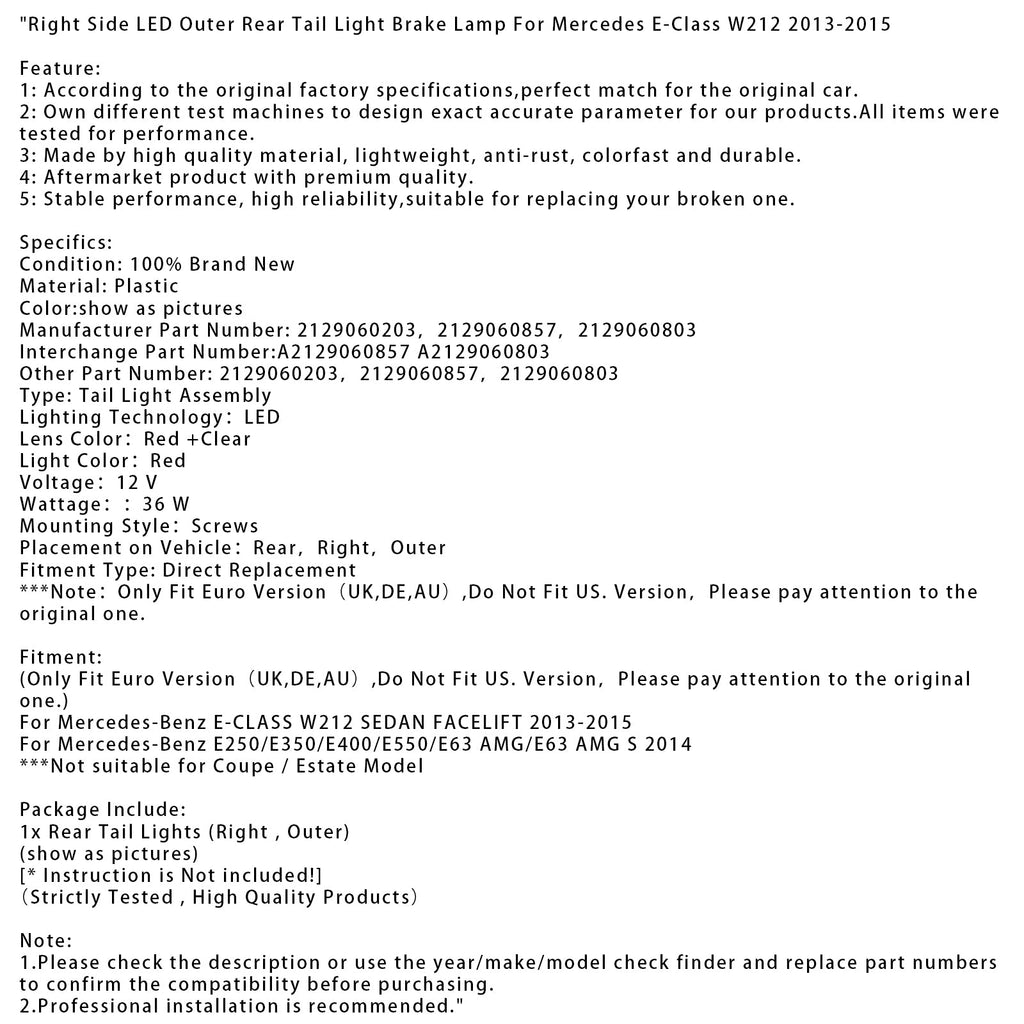 Rechter buitenste LED-achterlicht voor Mercedes E-Klasse W212 (2013-2015)
