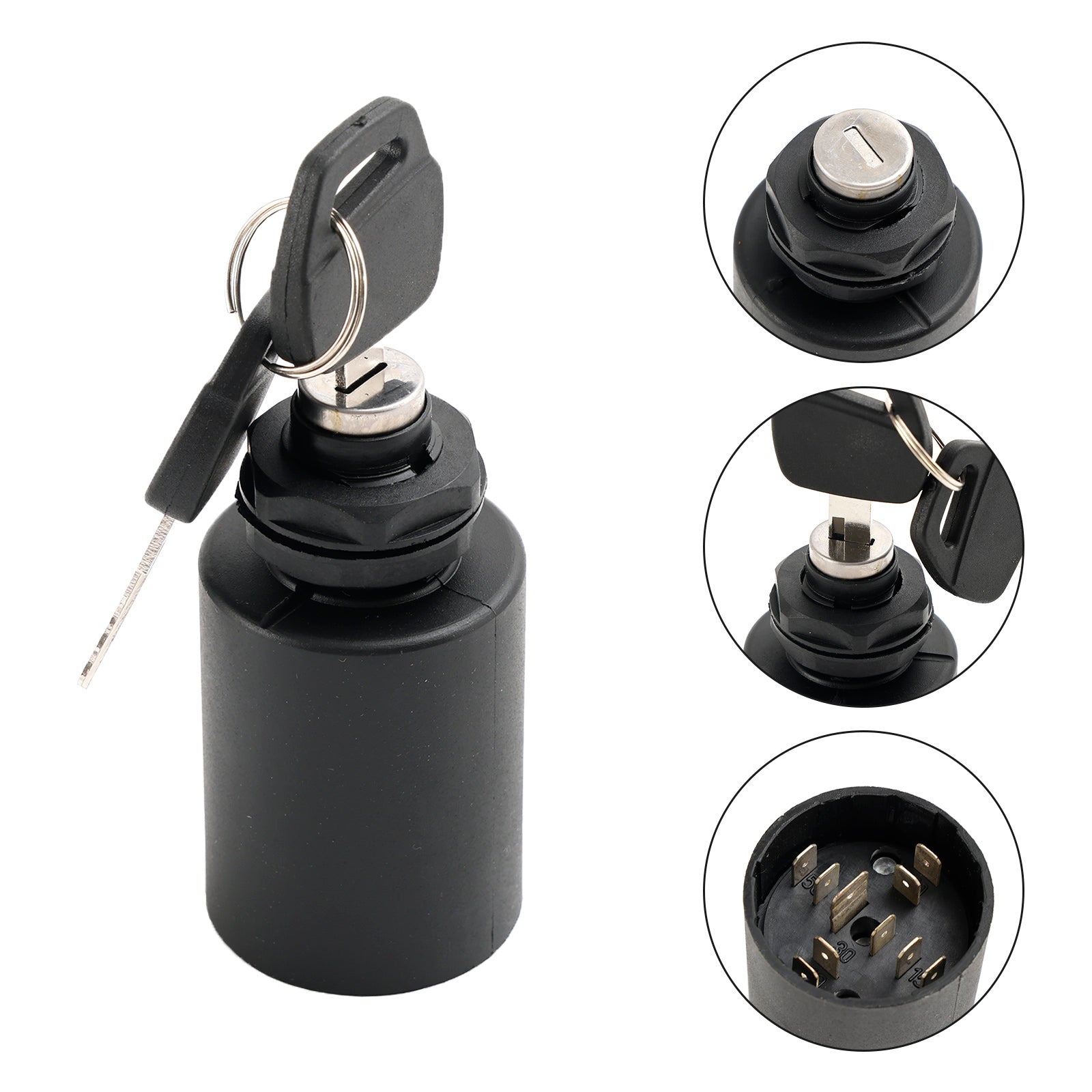 2: Dit is een drieweg-vervangende sleutelschakelaar met vier aansluitingen (in-, uitschakelen en inschakelen met verlichting). De 12 uur-positie is "UIT" en de sleutel kan worden verwijderd. De 1 uur-positie zet de wagen aan, zodat deze kan werken. De 2 uur-positie zet de lichten (of andere accessoires) op "ON/ACC" en zorgt er ook voor dat de wagen kan werken.