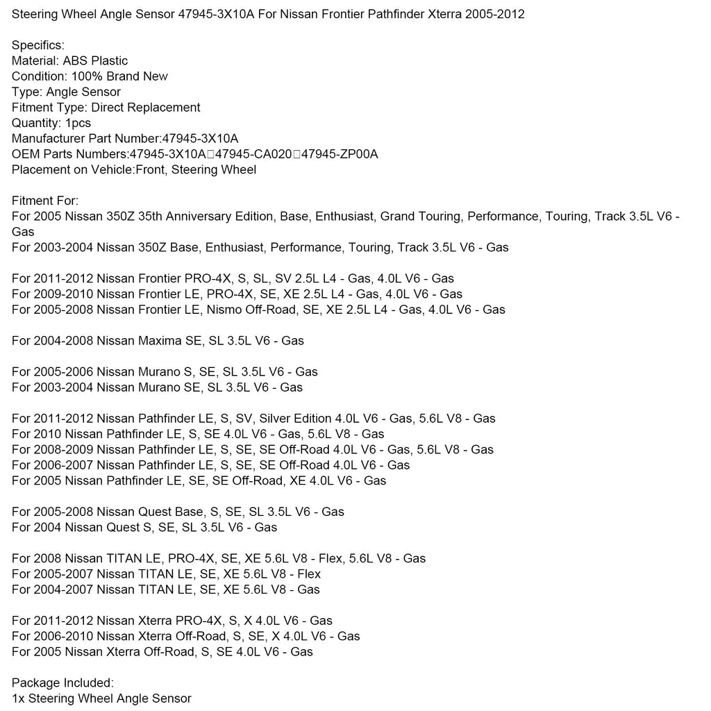 Stuurhoeksensor 47945-3X10A voor Nissan Frontier Pathfinder Xterra 2005-2012