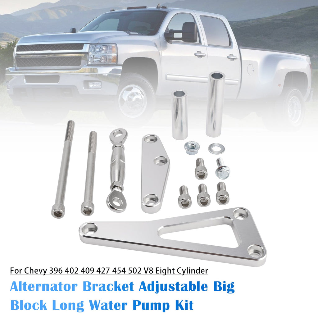 Verstelbare dynamo-beugel en lange waterpompset voor grote Chevy 396, 402, 409, 427, 454 en 502 V8 achtcilindermotoren.