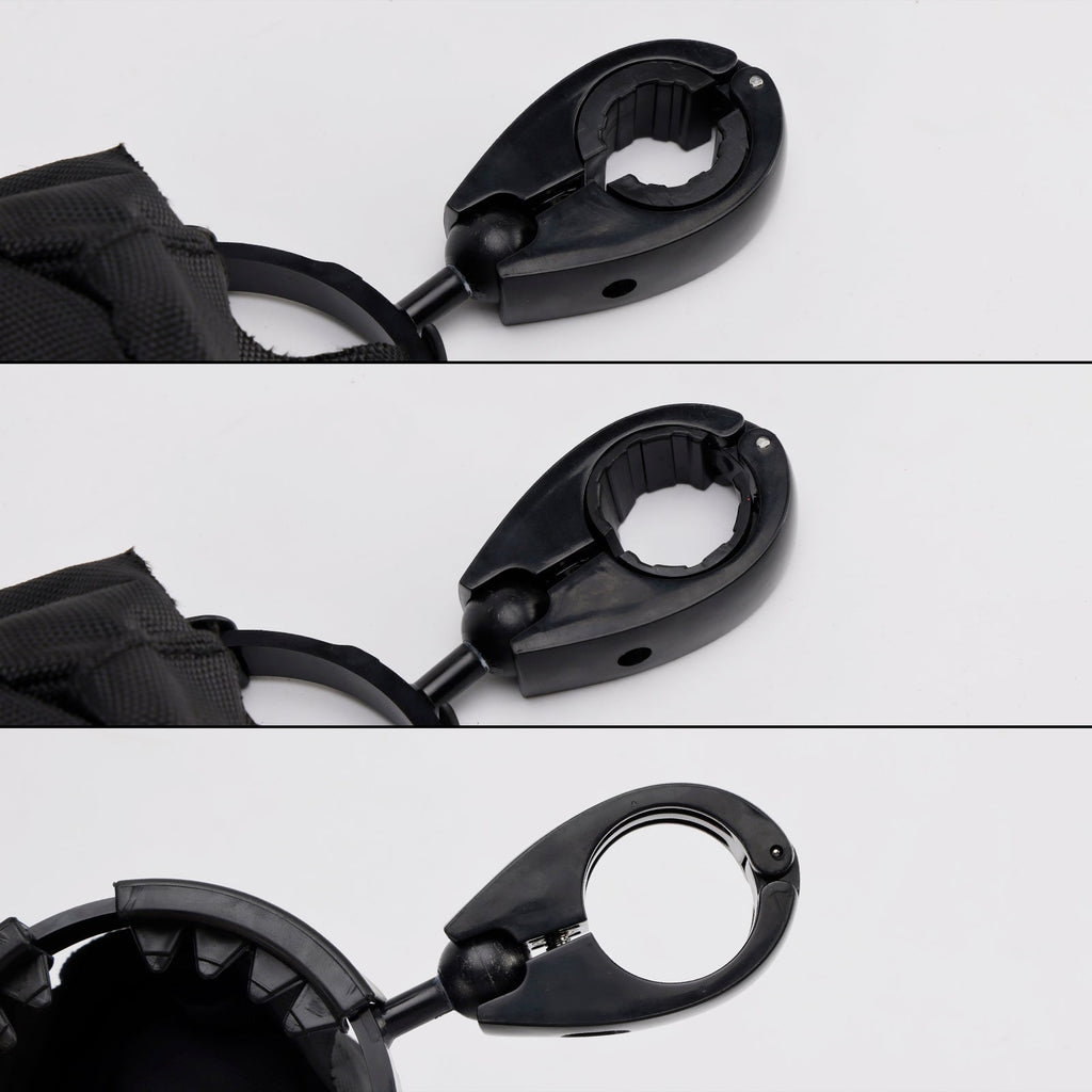 Deze bekerhouder kan worden gemonteerd op de leuning, onder de zitting, op de diagonale buis, de vork, het stuur en is ook geschikt voor de meeste kinderwagens.