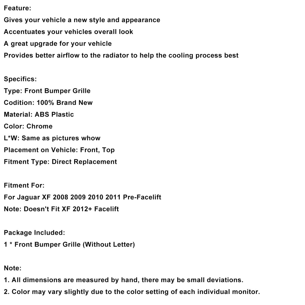 XF-R-stijl voorbumpergrille voor Jaguar XF 2008-2011, chroom