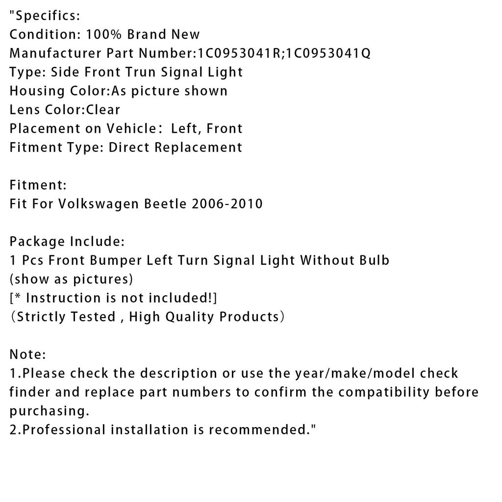 1 kierunkowskaz lewy do zderzaka przedniego Volkswagen Beetle 06-10 1C0953041R