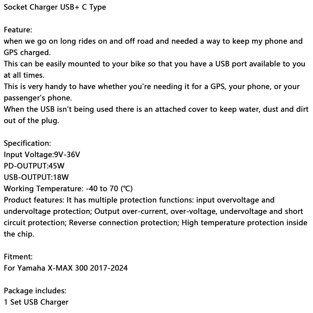 Ładowarka USB + gniazdo typu C do Yamaha X-MAX 300 2017-2024