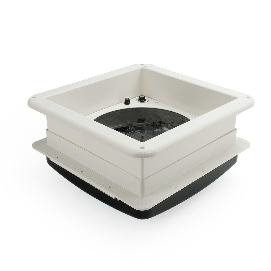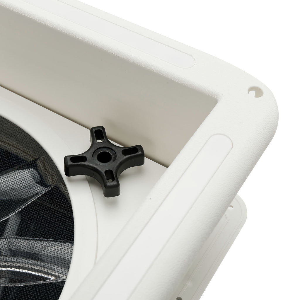 Nawiewnik pasuje do standardowych otworów dachowych pojazdów kempingowych o wymiarach 14 x 14 cali.