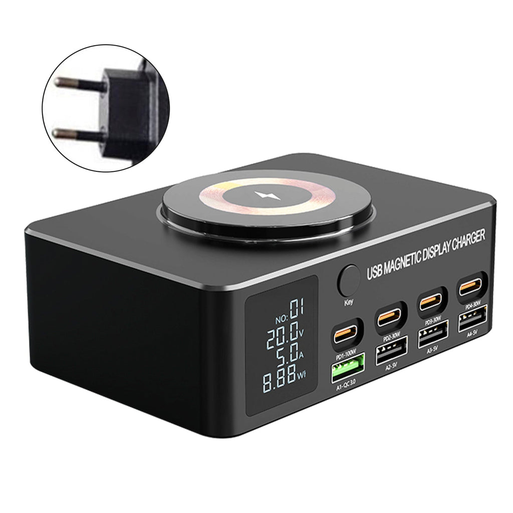 Szybka ładowarka 140 W, inteligentny wyświetlacz cyfrowy PD100 W, do telefonów komórkowych i laptopów, magnetyczne ładowanie bezprzewodowe, ładowarka USB z wieloma portami, wtyczka EU