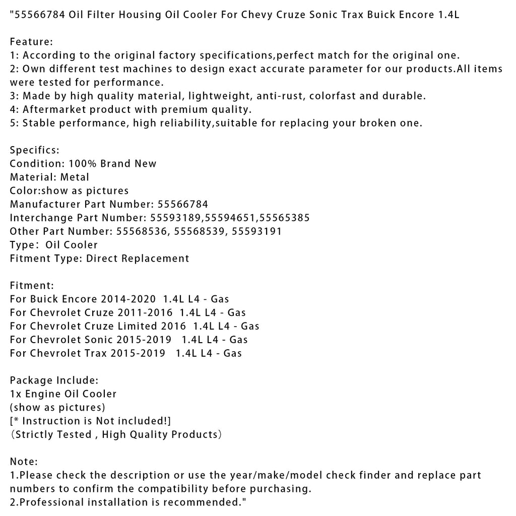 Obudowa filtra oleju i chłodnica oleju 55566784 kompatybilna z modelami Chevy Cruze, Sonic, Trax i Buick Encore 1.4L