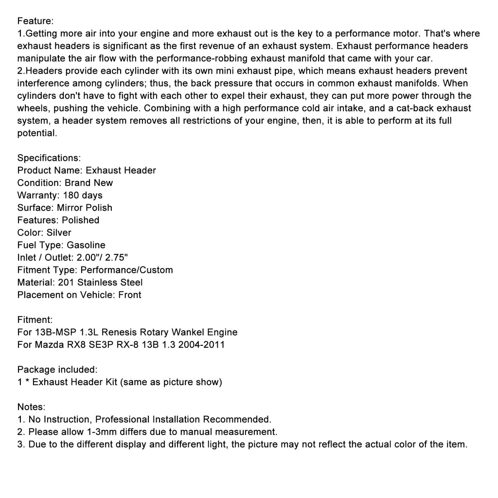 2004-2011 Mazda RX8 RX-8 R3 GT Duży kolektor wydechowy ze stali nierdzewnej
