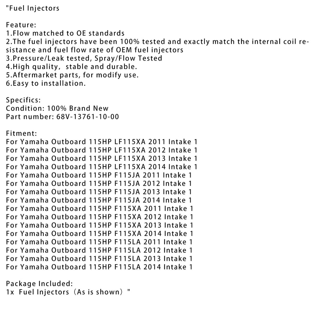Wtryskiwacz paliwa 68V-13761-10-00 do silnika zaburtowego Yamaha 115HP F115JA F115LA 11-14