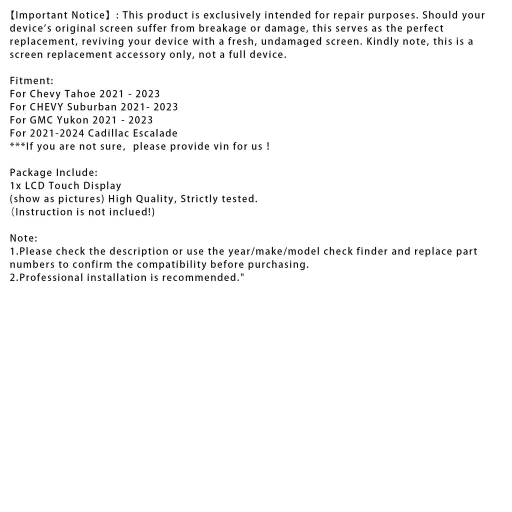 【Uniwersalne dopasowanie do wybranych SUV-ów】: Ciesz się najwyższą jakością rozrywki w samochodzie dzięki naszemu 12,6-calowemu telewizorowi LCD montowanemu w zagłówku tylnego siedzenia, zaprojektowanemu tak, aby idealnie pasował do modeli GMC Yukon/Yukon XL z lat 2021-2023, Chevroleta Tahoe z lat 2021-2023, Chevroleta Suburban z lat 2021-2023, Cadillaca Escalade z lat 2021-2023.