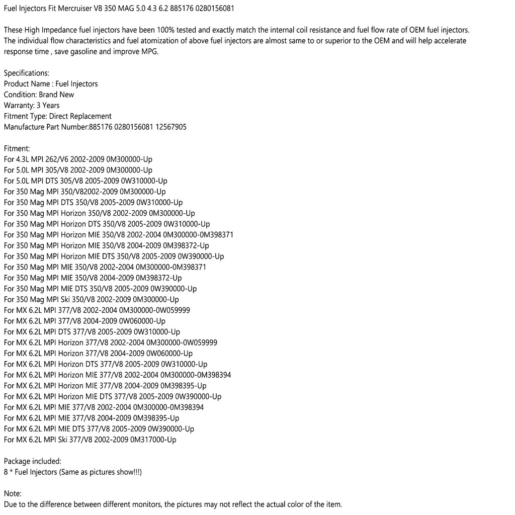 Wtryskiwacze paliwa pasują do Mercruiser V8 350 MAG 5.0 4.3 6.2 885176 0280156081