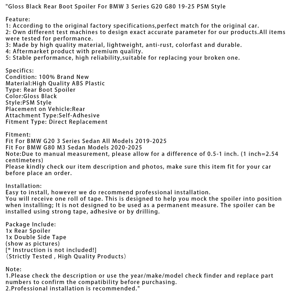 Czarny błyszczący tylny spoiler bagażnika do BMW serii 3 G20 G80 19-25, styl PSM