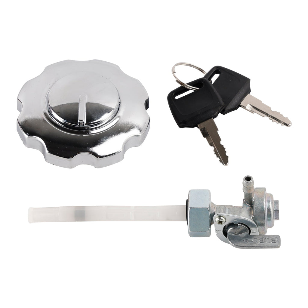W zestawie znajduje się chromowany korek wlewu paliwa z kluczykami i kranik do stosowania z przewodem paliwowym o średnicy 3/8".16"".