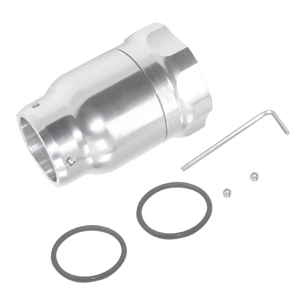 Zbiornik aluminiowy obrabiany CNC. Eliminuje standardowy przewód i zbiornik zdalny. Dzięki temu podwójnie uszczelnionemu mocowaniu i dołączonym pierścieniom uszczelniającym zbiornik ten można zamontować bezpośrednio na standardowym głównym cylindrze sprzęgła.