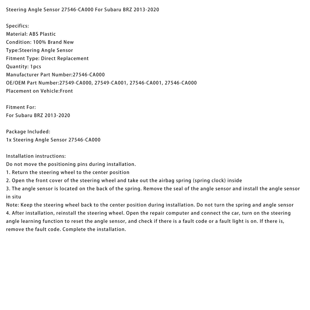 Czujnik kąta skrętu 27546-CA000 kompatybilny z Subaru BRZ 2013-2020