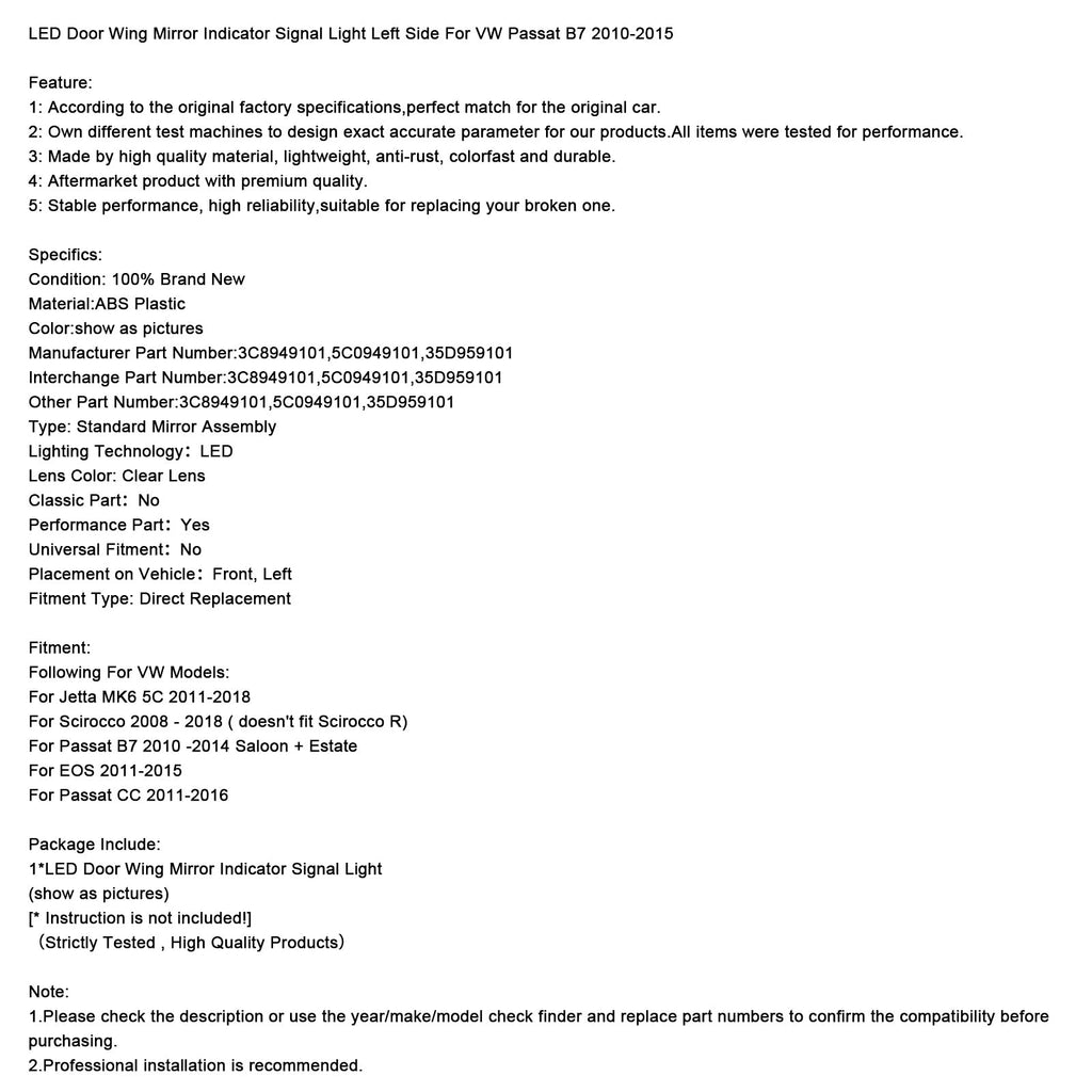 Lewe lusterko boczne, kierunkowskaz LED do VW Passata B7 2010-2015