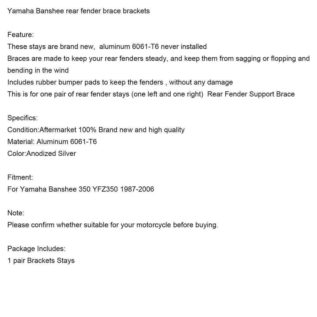 Yamaha Banshee Tylny błotnik Wzmocnienia wsporniki