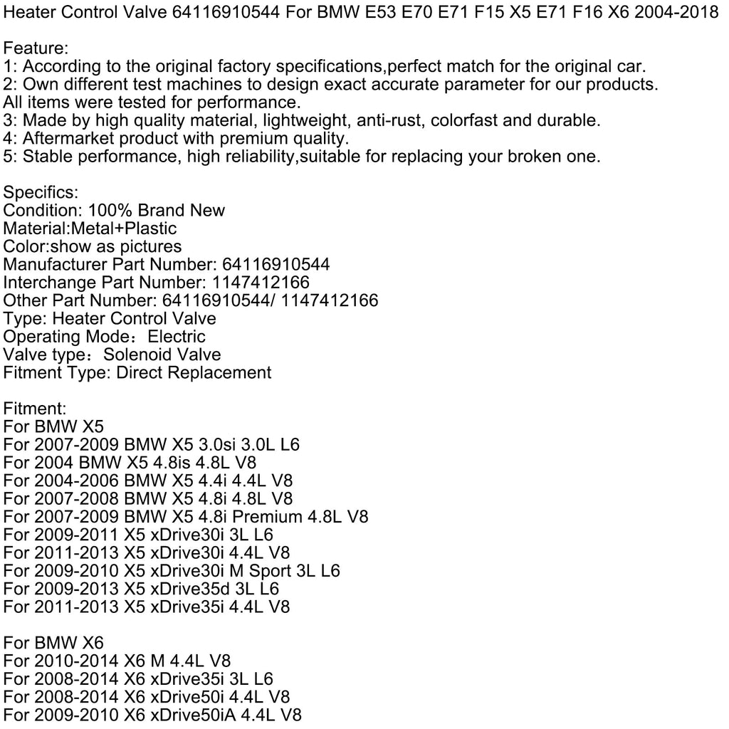 Zawór sterujący ogrzewaniem 64116910544 do BMW E53 E70 E71 F15 X5 E71 F16 X6 2004-2018