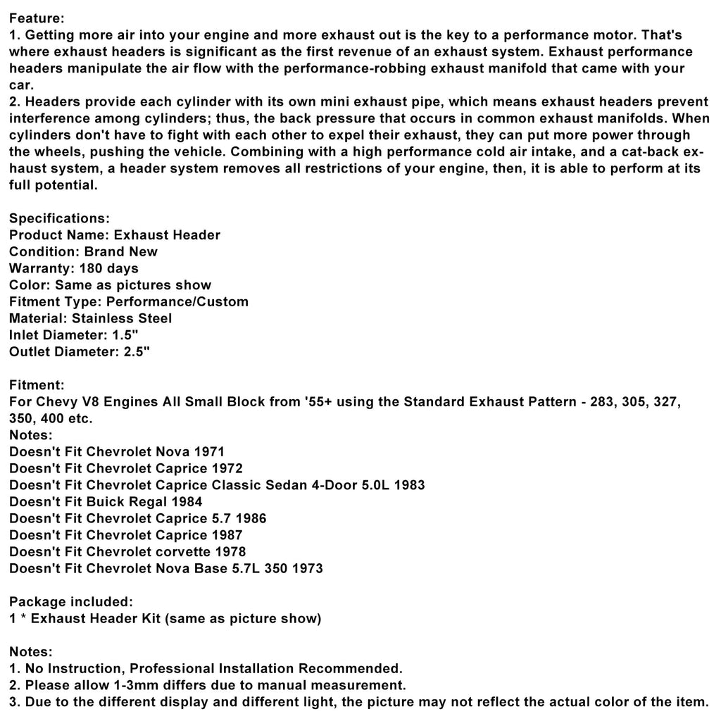 W przypadku silników Chevy V8 wszystkie małe bloki od 1955 r. wykorzystują standardowy wzór wydechu - 283, 305, 327, 350, 400 itd.