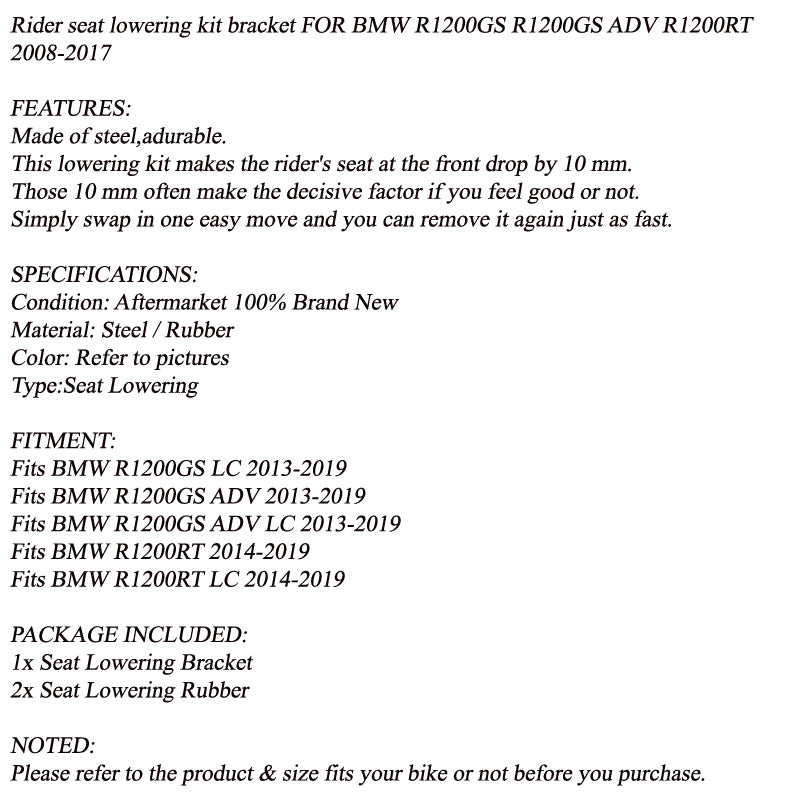 Zestaw obniżający siedzenie kierowcy Uchwyt do BMW R1200GS R1200GS ADV R1200RT 2013-2019