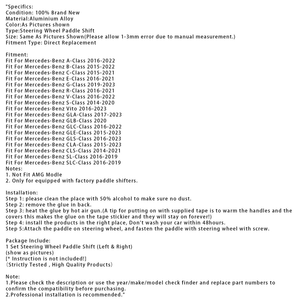 Przedłużenia łopatek zmiany biegów w kierownicy do Mercedes-Benz C GLC E 2015-2022