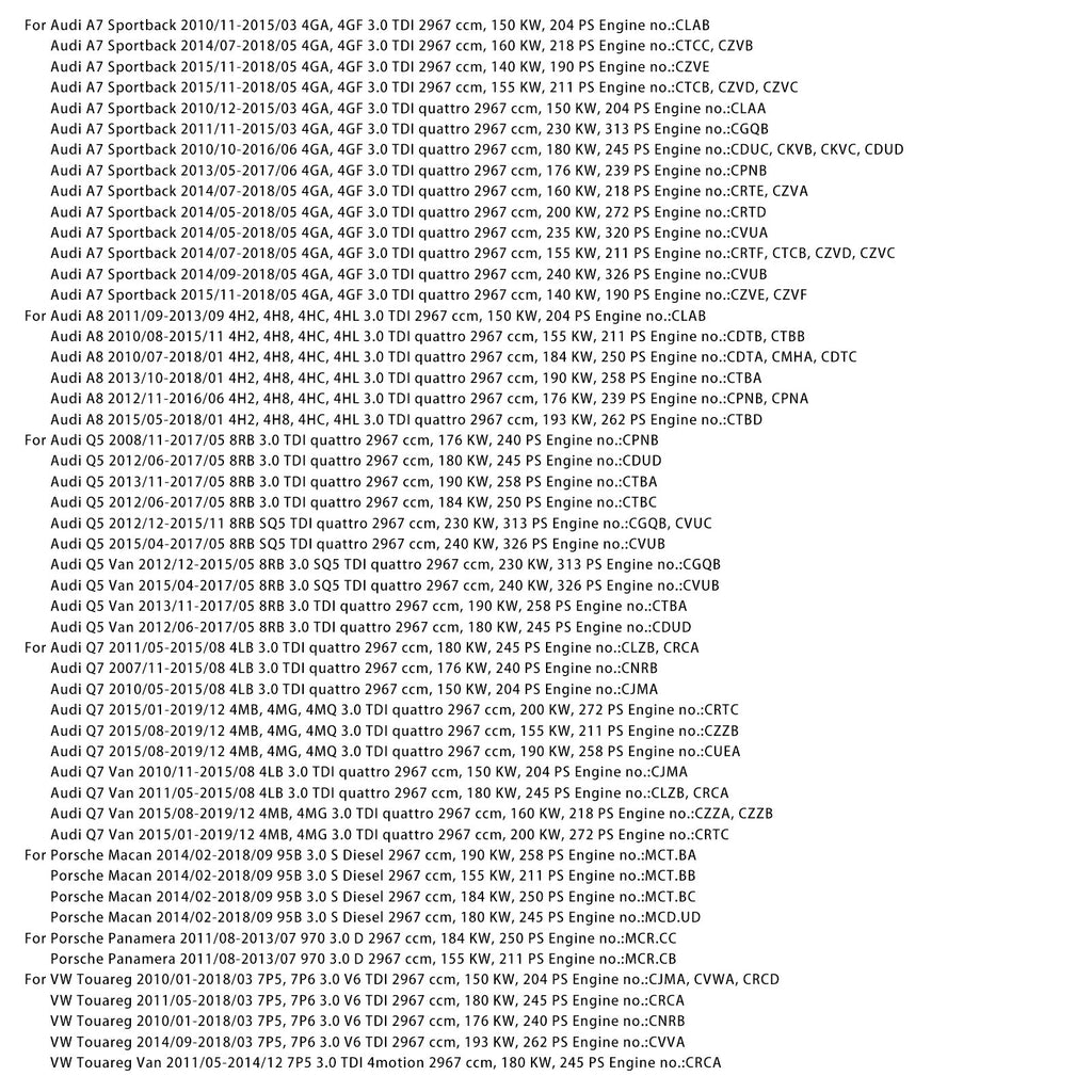 Dla Audi Q7 2011/05-2015/08 4LB 3.0 TDI quattro 2967 ccm, 180 KW, 245 PS Nr silnika: CLZB, CRCA