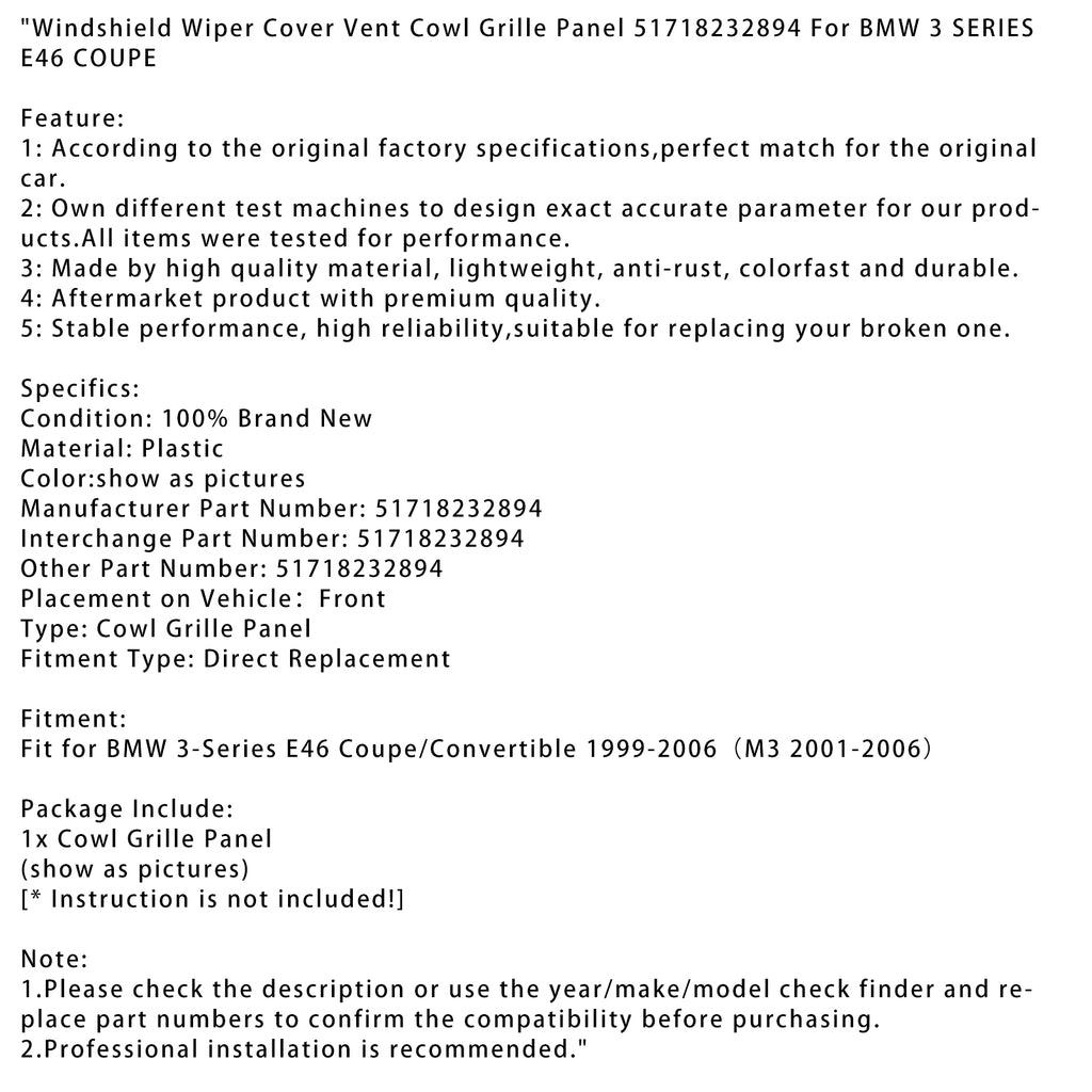 2001-2006 BMW 3 Series E46 Coupé Wiper Repair Couvel Cowl Grille Panel 51718232894